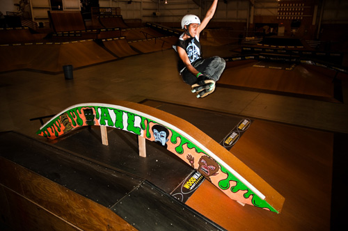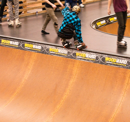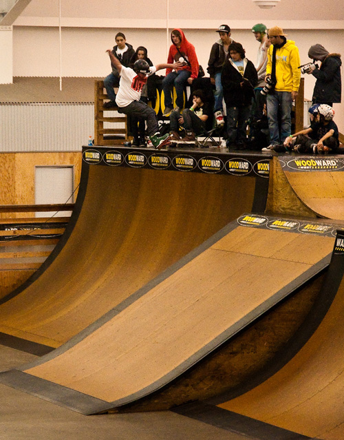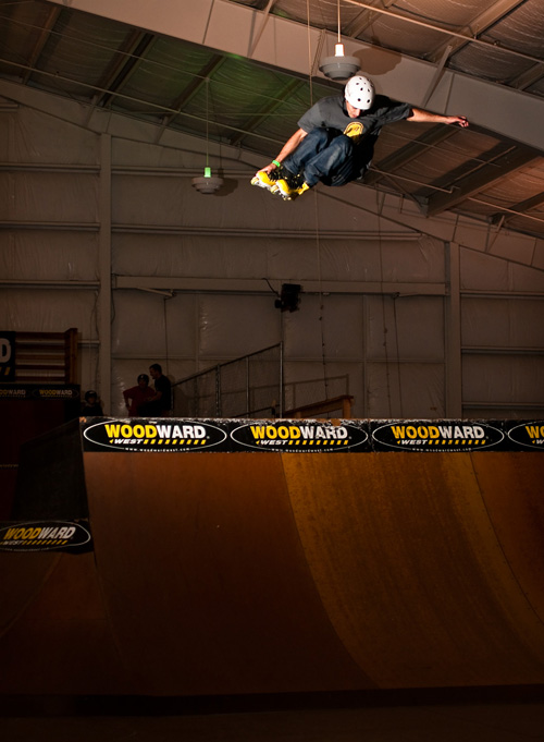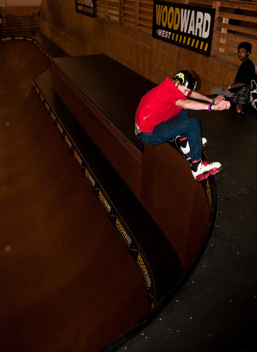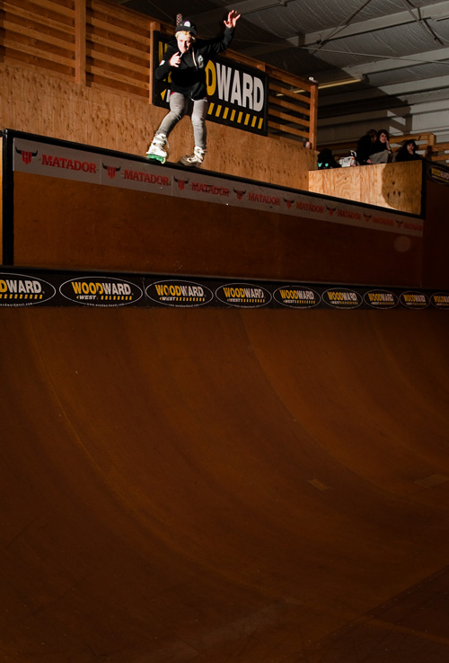 Dozens of car loads of rollerbladers headed up to Woodward West for the first contest of the 2010Amateur Inline League season. The stage was set, and kids antsy and anxious after a long winter were poised to get their blade on. And blade they did. Rollerbladers came from as far away as Utah, Brazil, and Venezuala, and of course all over California, for the chance to compete in the AIL and skate the highly-regarded Hangar 18 park at Woodward West. Snow fell outside as the action inside began to heat up.